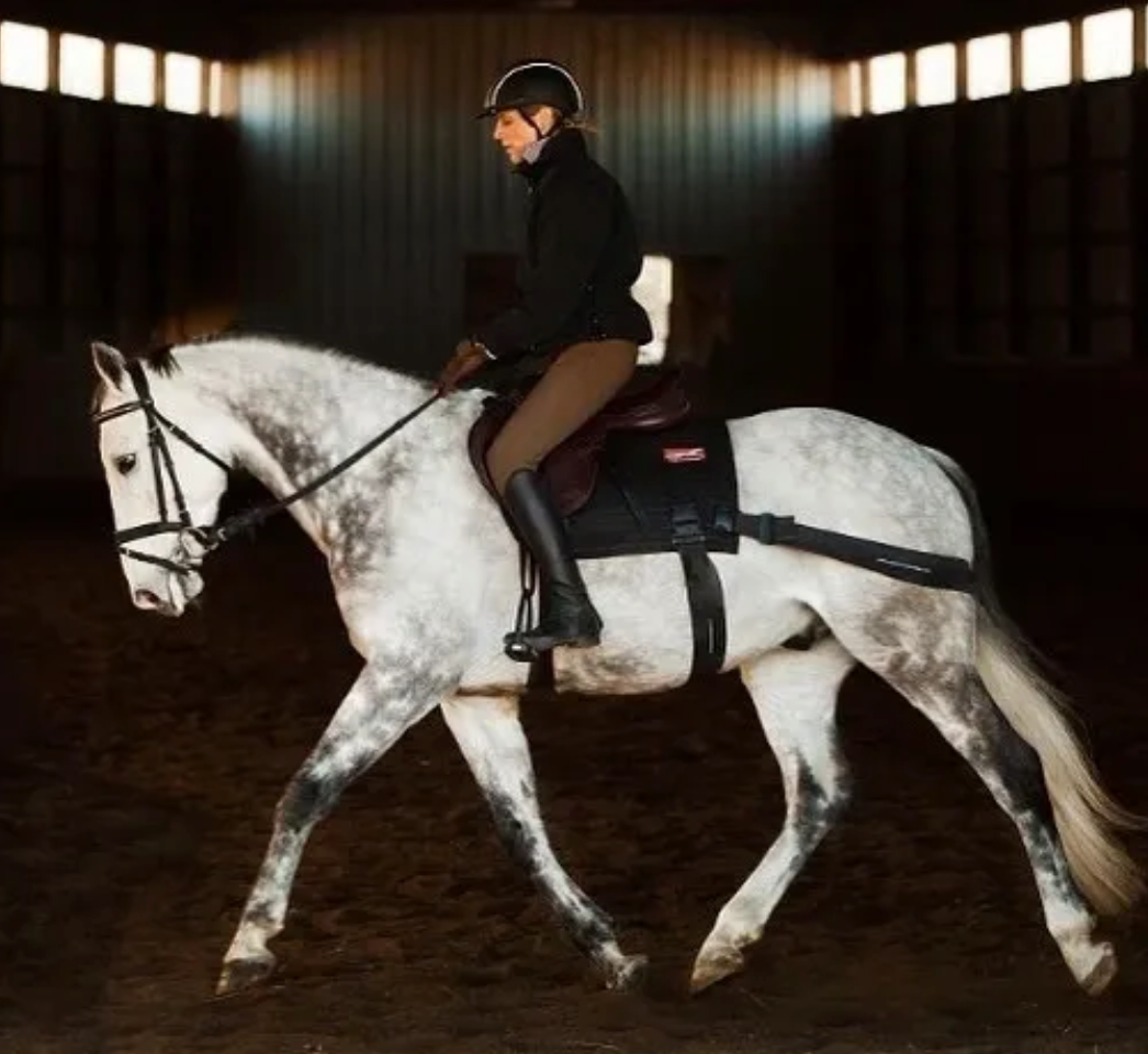"Core muscles mobilize and stabilize the horse’s back. Core strength helps to prevent the development of back pain and injuries. The Equiband® system has been developed specifically to stimulate receptors in the horse’s skin and hair follicles. In response to this stimulation, the abdominal, sublumbar and deep neck and back muscles are activated. These muscles raise and round the back and engage the hindquarters. Regular use of the Equiband® system strengthens this core musculature, making it easier for the horse to work in a round outline and reducing the risk of pain and injury due to hollowing or instability of the joints in the neck and the back."